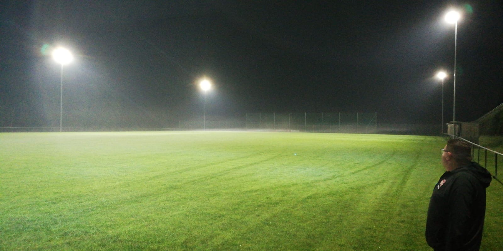 Übersetzt heißt das, auf unserem A-Platz steht seit letzter Woche eine nagelneue Flutlichtanlage mit moderner und energiesparender LED-Technik, die jeden qm des Platzes mit einer Beleuchtungsstärke von 75 Lux ausleuchtet. Ein Quantensprung in Sachen Ausleuchtung und nicht zu vergleichen mit den alten, stromfressenden Leuchten von anno dazumal. Doch nicht nur der A-Platz erstrahlt in neuem Licht, sondern auch im Stadion und auf dem Bolzplatz wurden auf je zwei Masten das Lauflicht bzw. das Trainingslicht modernisiert.