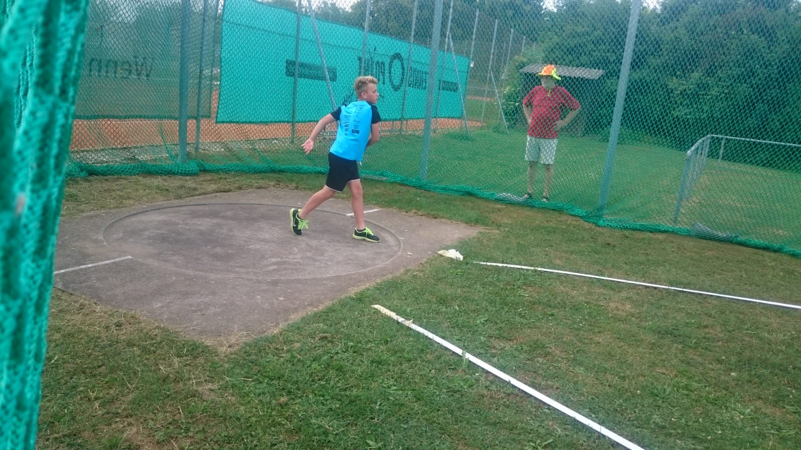 Bevor das Netz zum Überwintern in den Keller kommt wurde in kleiner Runde noch die Vereinsmeisterschaften im Diskuswerfen durchgeführt. Erfreulich, dass sich auch einige Läufer für einen Start auf ungewohntem Terrain entschieden hatten. Ältester Teilnehmer war Karlheinz Seyerlein mit 78 Jahren der mit 24,25m auch noch eine Jahresbestleistung erzielte. Nesthäkchen der Veranstaltung war die 12-jährige Isabel Ammon. Den weitesten Wurf des Tages erzielte Gaststarter Enrico da Cruz von der LG Eckental mit sehr guten 50,58m.